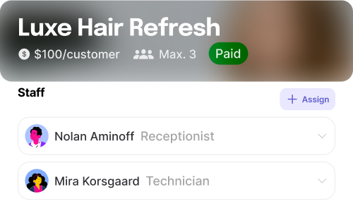 Allows salons to organize appointments using "Boards," a versatile tool that groups services, staff, and venues into schedules tailored to their needs. Each board can have its schedule settings marked as private or public bookings, making it easy to manage availability for customers. Salons can adjust these schedules dynamically, ensuring smooth operations and minimal booking conflicts. This setup caters to varying business models.