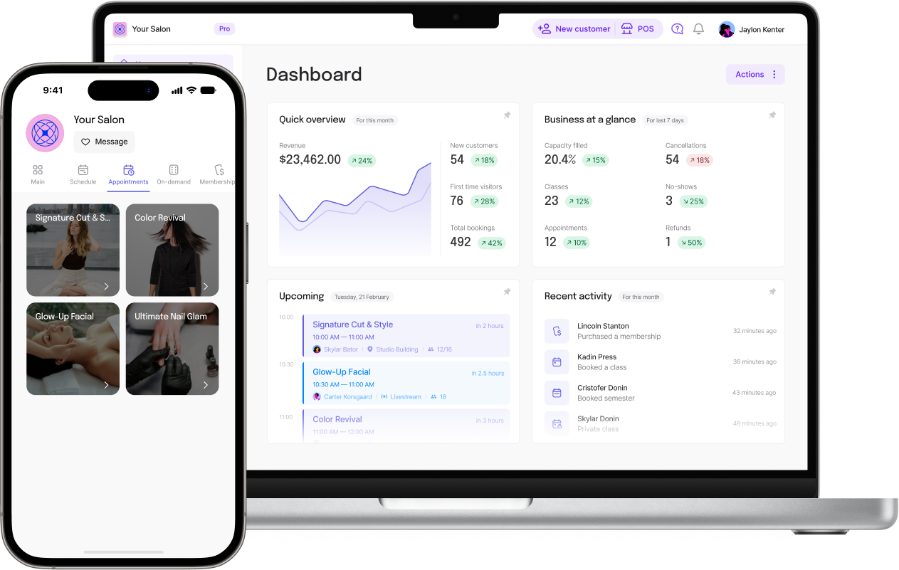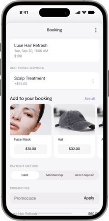 Easily intake new clients, manage retail, payments, bookings, and activity via the customer profile.