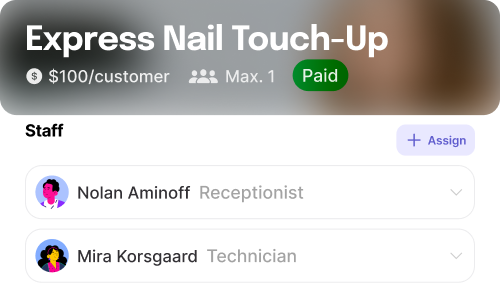 Allows salons to organize appointments using "Boards," a versatile tool that groups services, staff, and venues into schedules tailored to their needs. Each board can have its schedule settings marked as private or public bookings, making it easy to manage availability for customers. Salons can adjust these schedules dynamically, ensuring smooth operations and minimal booking conflicts. This setup caters to varying business models, from one-on-one to small group services.