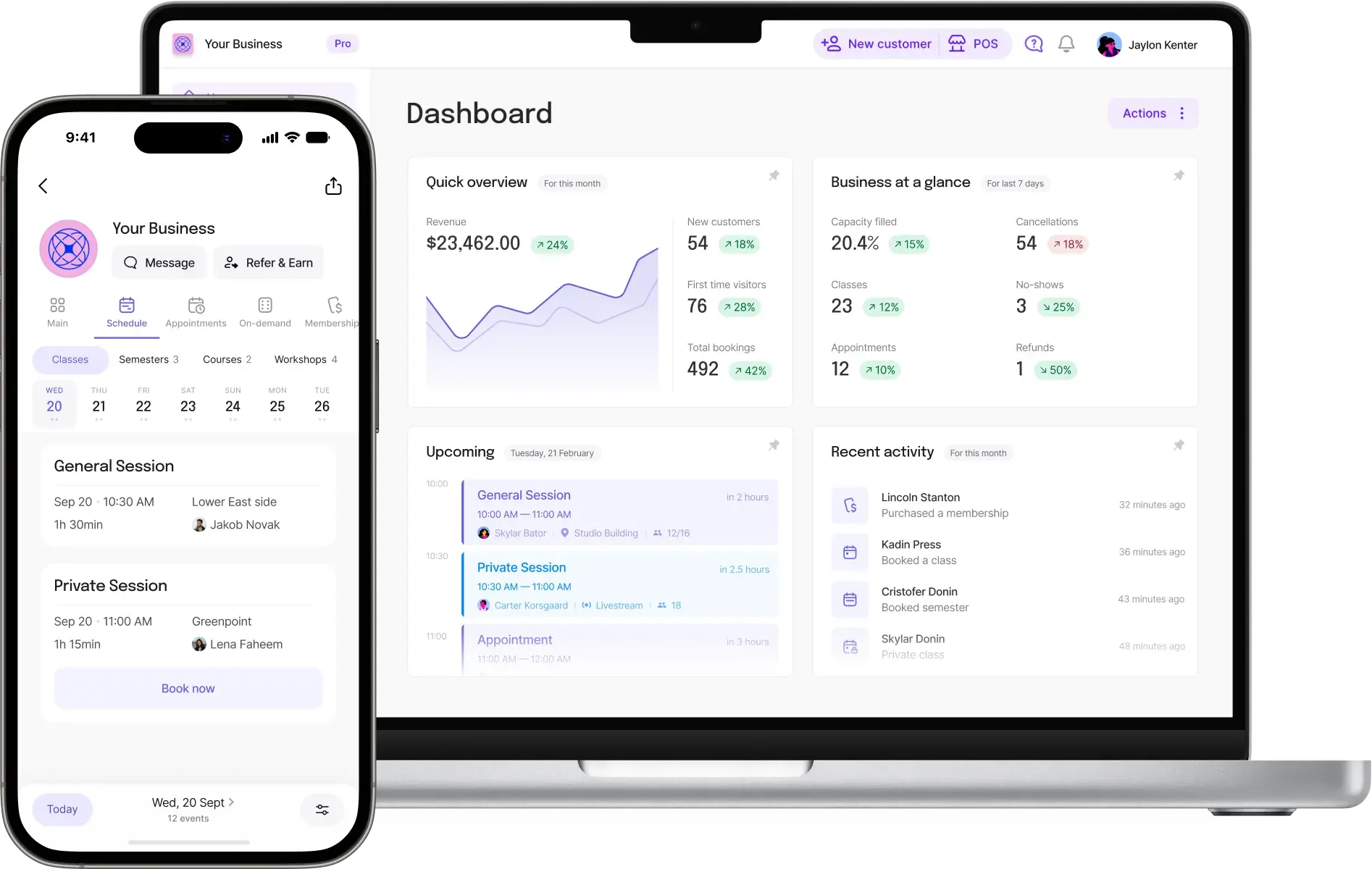 Class-based businesses with one physical location, offering appointments, group classes, or wellness services.